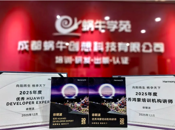 这份荣誉,是新征程的起点,蜗牛学苑将承载这份信任和期望,继续以热忱与坚持,照亮学员前行之路;用专业与创新,推动HarmonyOS技术走向更广阔的未来,成为更多开发者成长的引路人。