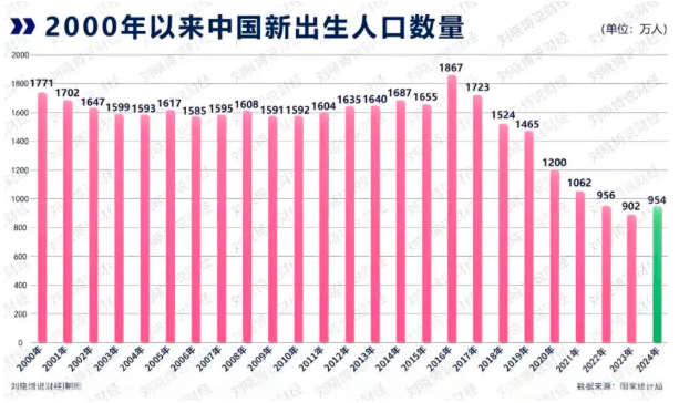 我们以 1200万左右为基数,因为2025年的大学毕业生人数为1222万,出身人口低于1200万,很有可能会有很多大学无生可招。也就是说,从2021年开始,出生人口数量就已经无法满足现在的大学招生规模了。