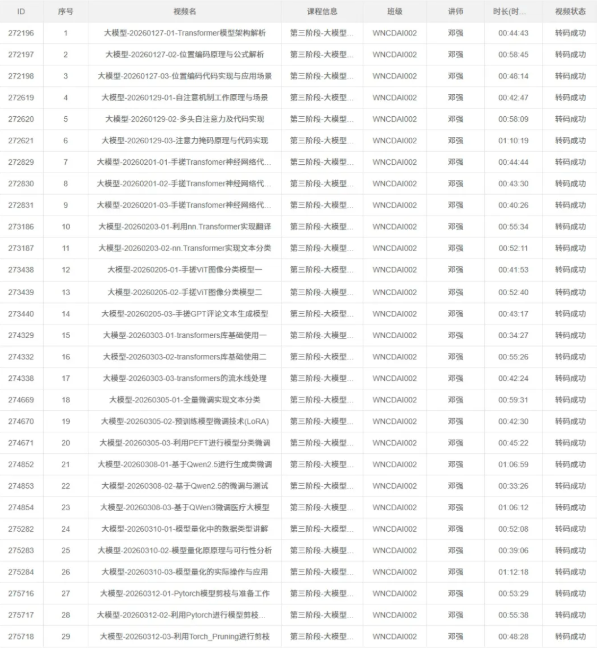 下图是正在实施的4.0课程体系中“大模型原理与应用”这门课程的录播视频,前两天完成的授课,还热乎的。课程深入浅出,完整细致地讲解了大模型的底层工作原理和代码实现。比如手搓Transformer神经网络,可能是全网最全面、最细致、最具实操性的课程了,诸如此类,不再赘述。给大家看看长啥样: