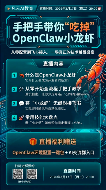 提醒大家,明天晚上8点钟,欢迎各位朋友加入凡云教育的直播,一起把玩一下这只小龙虾。